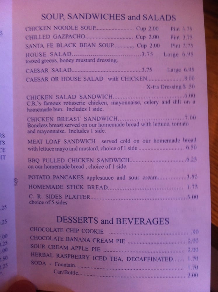 Introducing the menu at C R Chicks - Village Commons, a popular American sandwich spot in West Palm Beach, FL, offering a variety of rotisserie chicken dishes and pasta options. Highlights include the Rotisserie Chicken with Sides, with options like 1/2 Chicken and 2 Sides for $13.19, and Pastas with Chicken such as Chicken & Artichoke Linguine. Vegetarian options are plentiful, and the casual dining atmosphere with outdoor seating makes it a great spot for families and groups. Customer reviews praise the chicken salad, mashed potatoes, and friendly staff. While some dishes may benefit from more seasoning, overall the food is delicious and served quickly. Don't miss out on their chicken noodle soup and oatmeal cookies. C R Chicks - Village Commons is a must-visit for a satisfying and affordable meal.